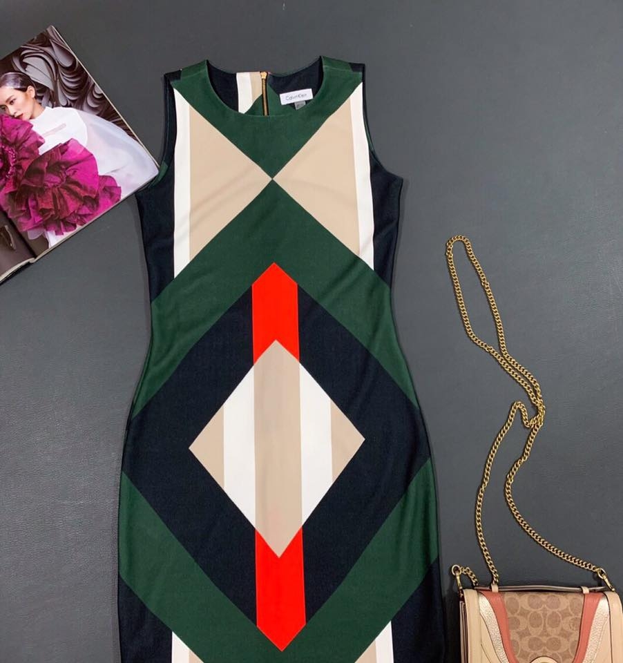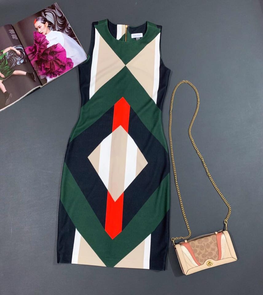 Đầm CK dư xịn. Chất vải xốp mềm, nhẹ có co giãn đặc trưng của hãng. Đầm ôm nhẹ cực tôn dáng chị e đi chơi hay đi làm đều được