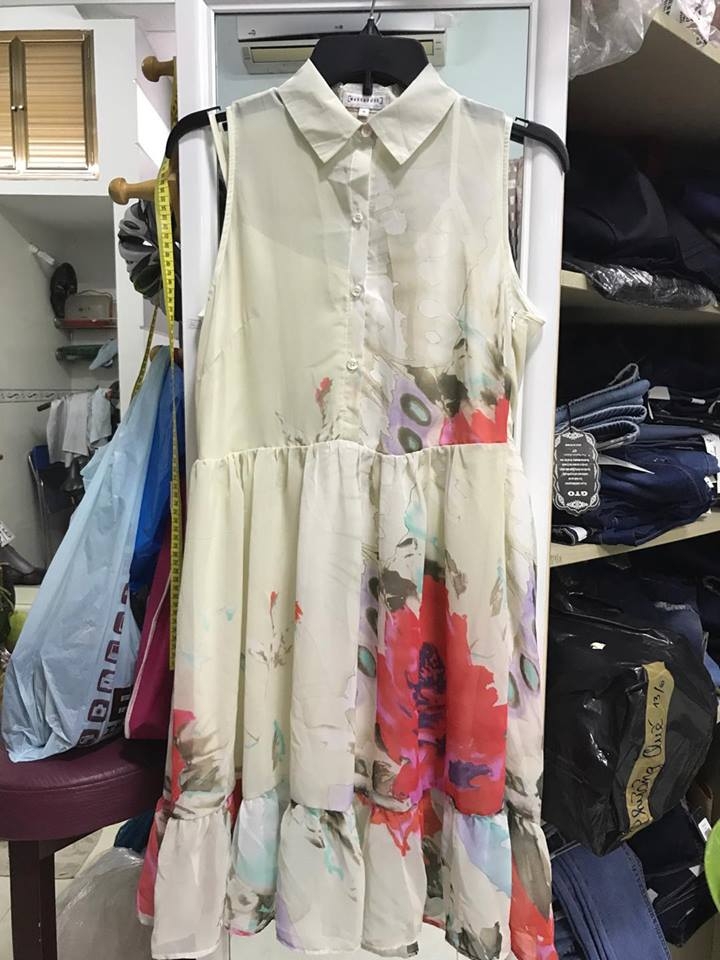 đầm Sơmi voan hoa 2 lớp